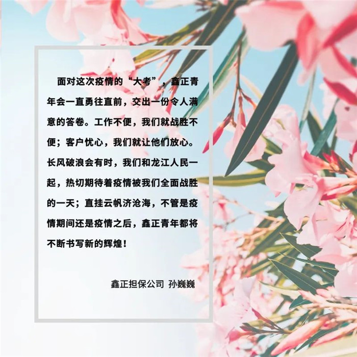 疫情之下,鑫正擔保的每一名員工,克服了工作生活的種種困難,在最急重、最需要、最基層的崗位上努力放光發熱,他們逆行的身影這樣美麗……