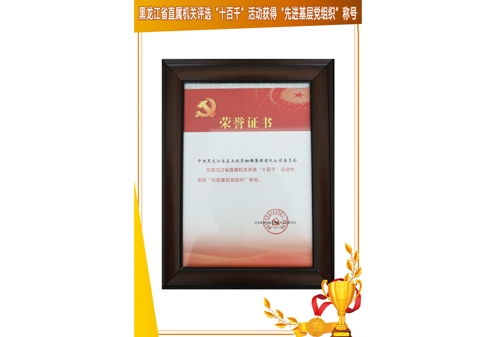 黑龍江省直屬機(jī)關(guān)評(píng)選“十百千”活動(dòng)獲得“先進(jìn)基層黨組織”稱號(hào)